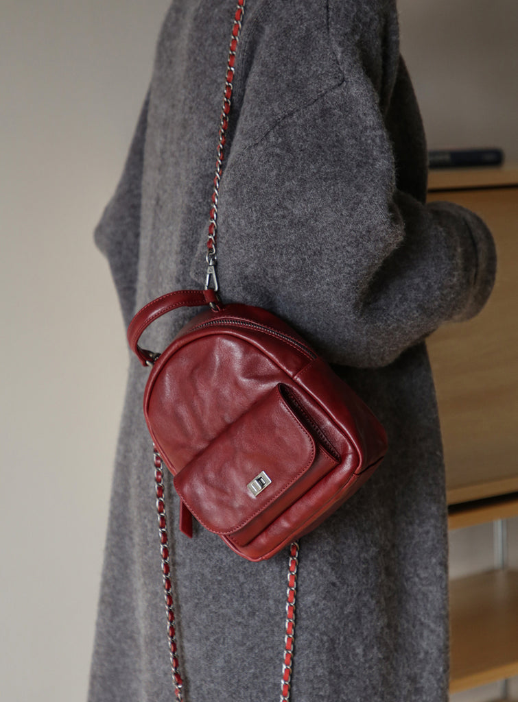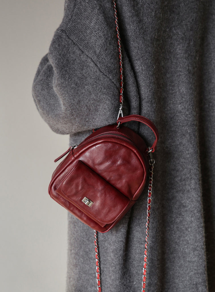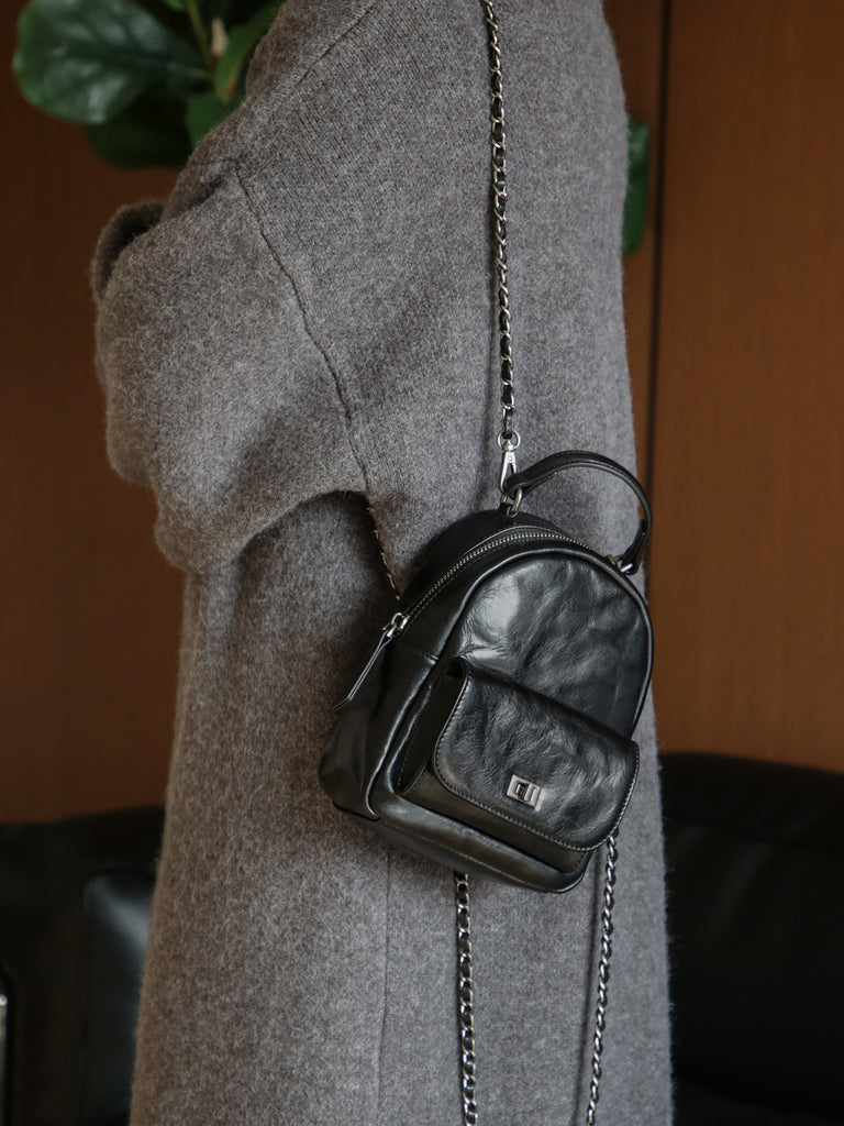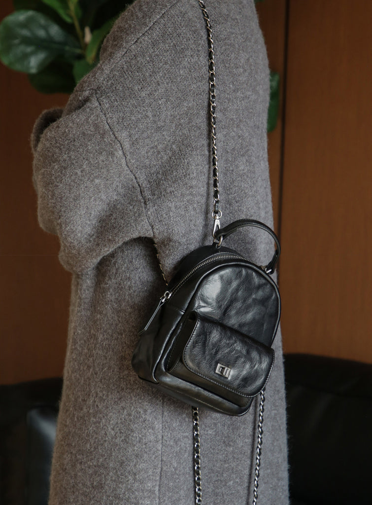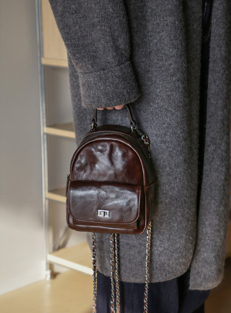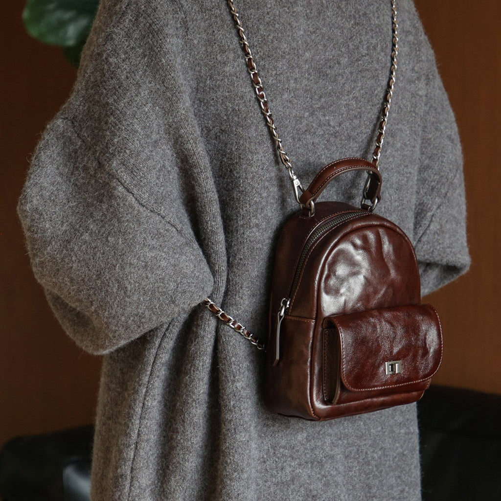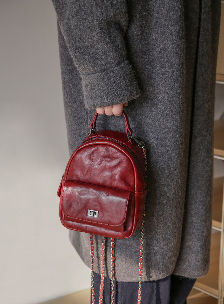 Mini Women’s Vegetable Tanned Leather Backpack Bag Top Handle Crossbody Bag