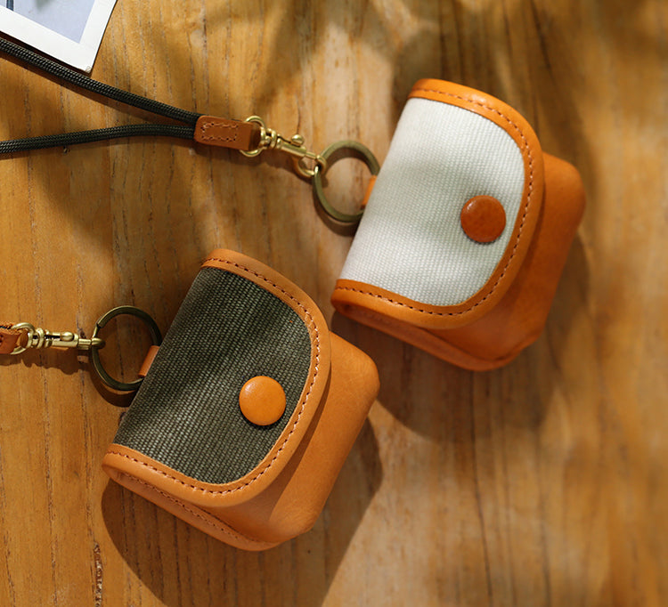 Made from full-grain cowhide leather and durable canvas, this mini case is designed for earbuds, keys, lip balm, coins, or tiny everyday items.