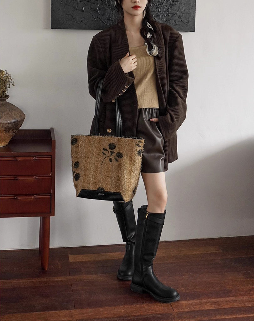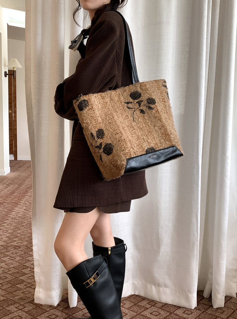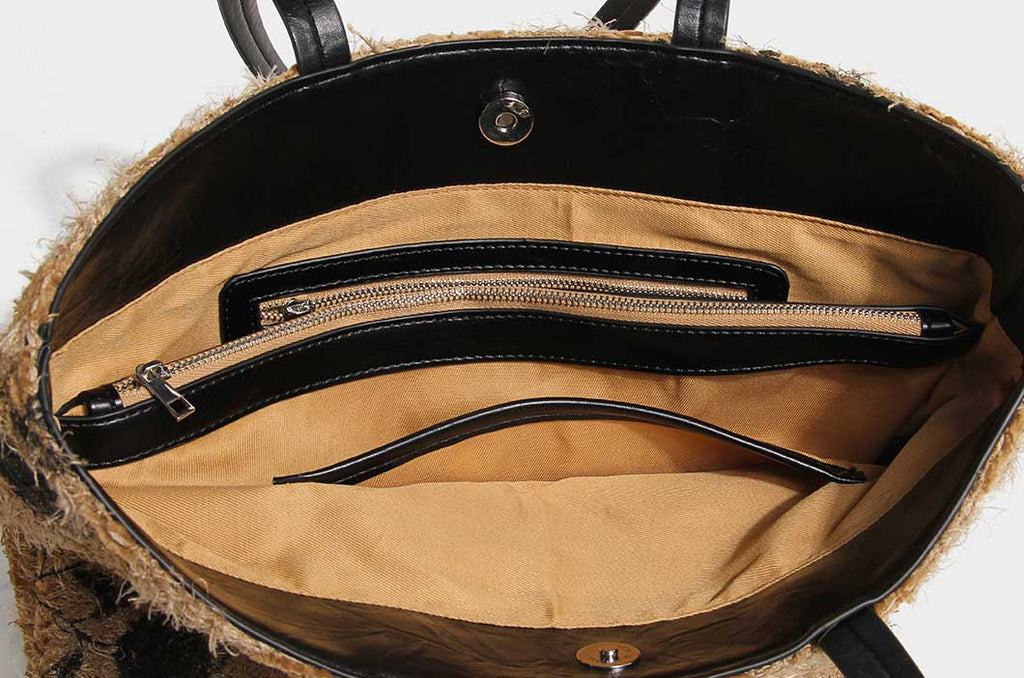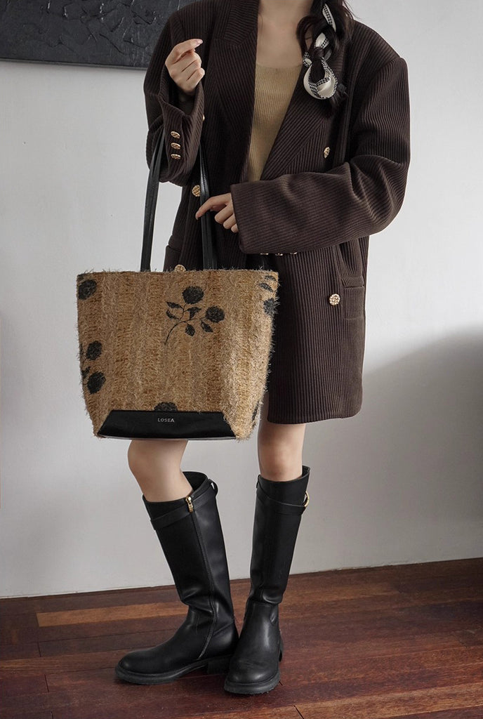 Boho Women's Large Woven Tote Bag with PU Leather Straps Casual Shoulder Handbag for Daily and Travel Use