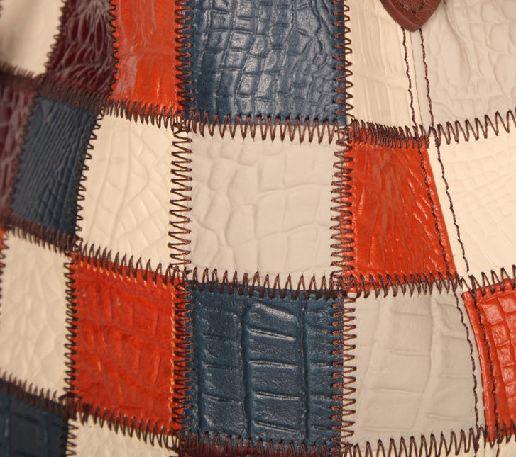 - Patchwork color-block design