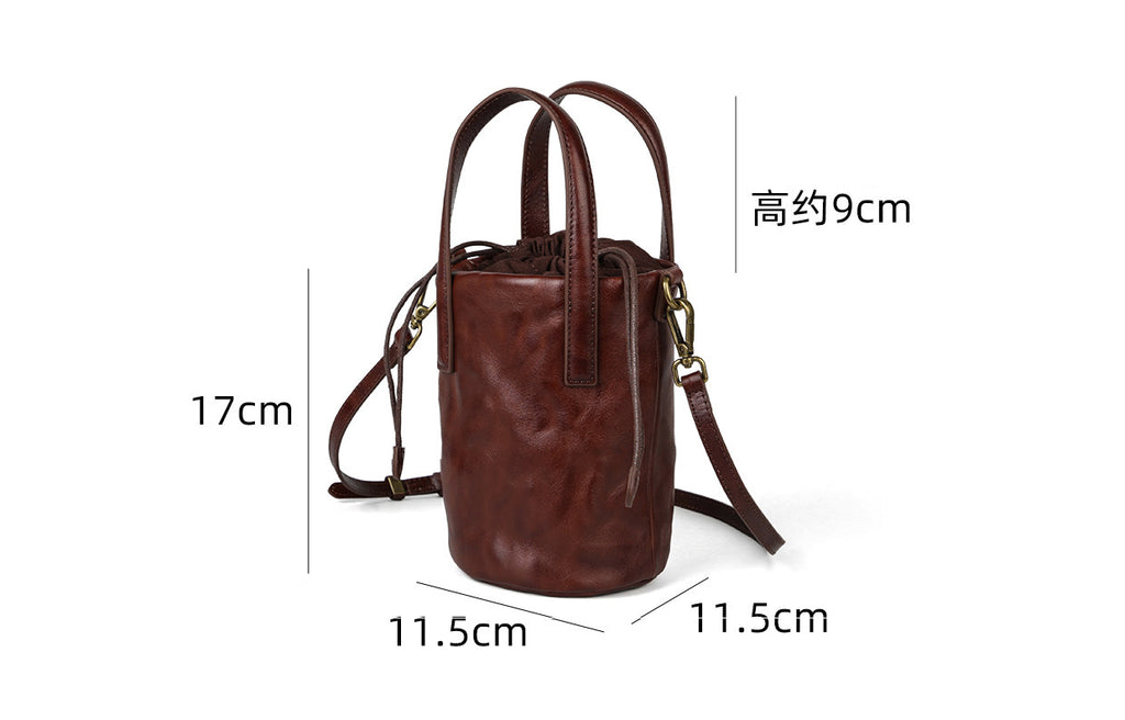 Womens Mini Leather Bucket Bag Vintage Drawstring Crossbody Handbag