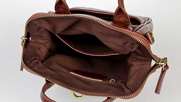 Despite its mini size, it offers practical storage: 1 interior slip pocket,1 interior zipper pocket,1 exterior slip pocket,Soft cotton lining,Full-grain leather that ages beautifully with use