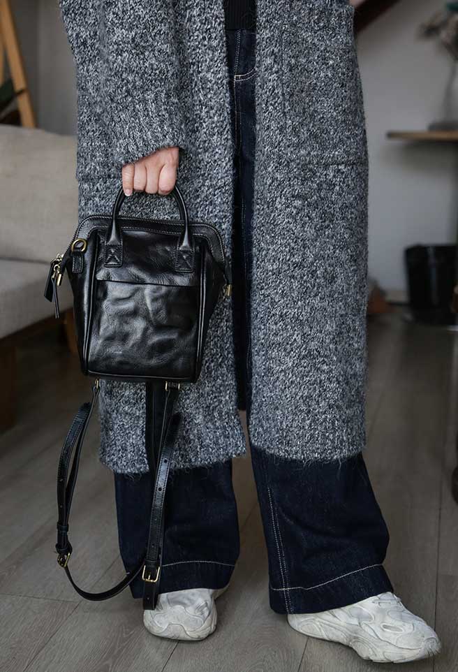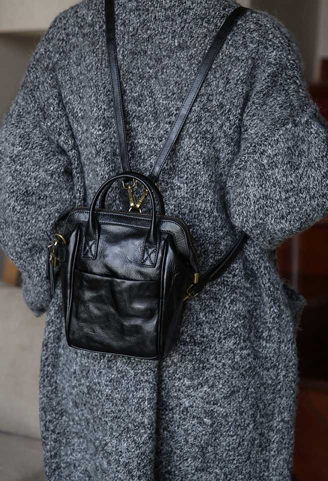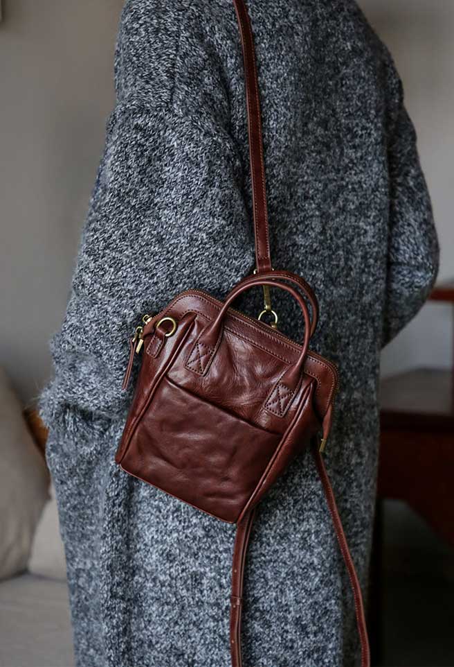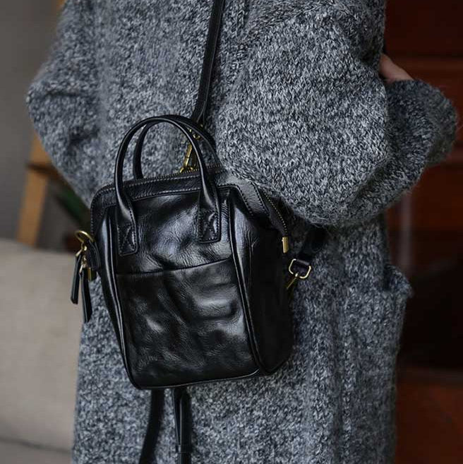 Women’s Mini Vegetable-Tanned Leather Backpack Bag Convertible Crossbody Handbag