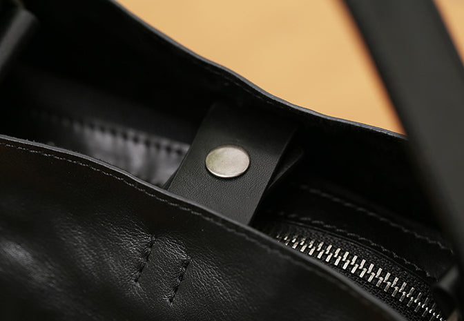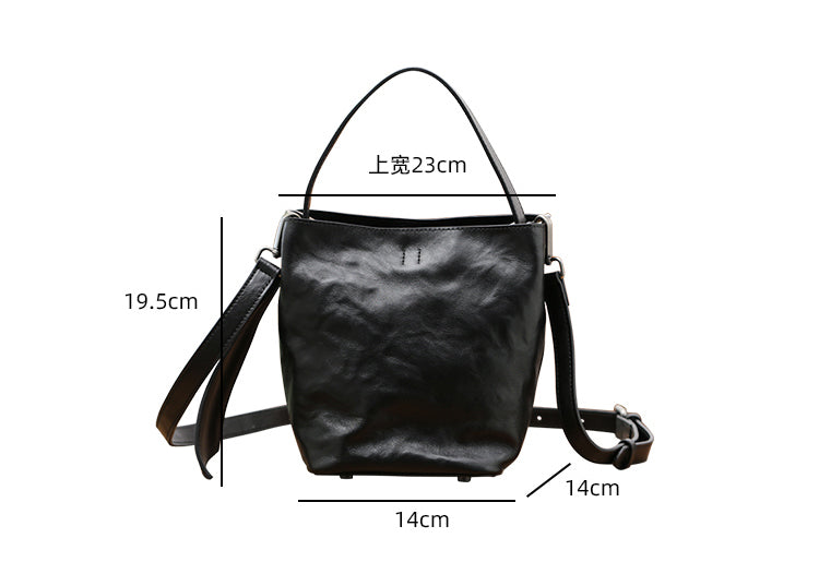 Black Leather Bucket Bag for Women Small Crossbody Top Handle Bag