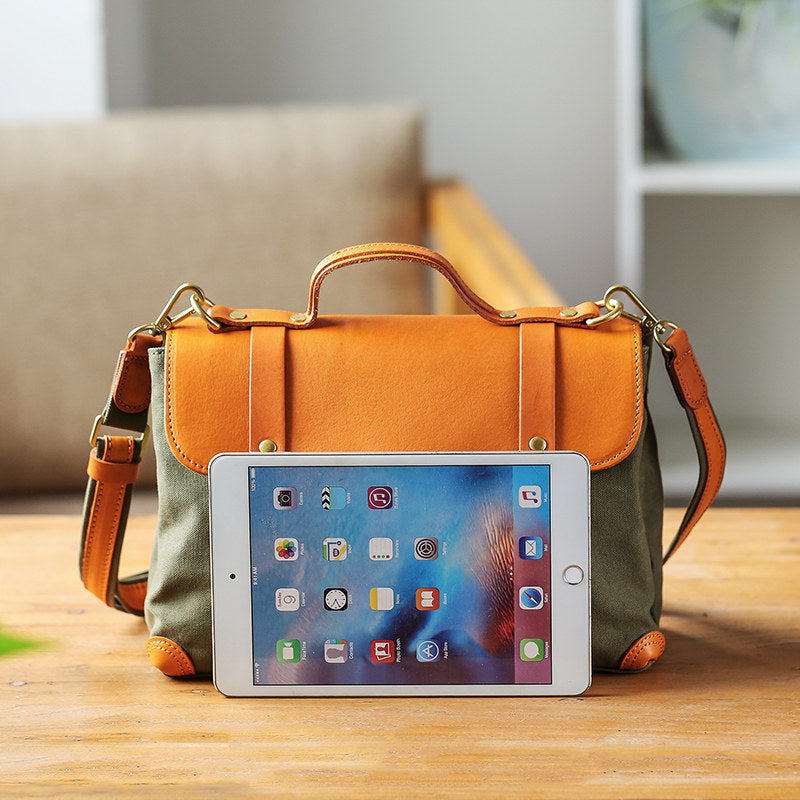 Canvas Leather Crossbody Bag for Women Casual Satchel Fits 10" Tablet