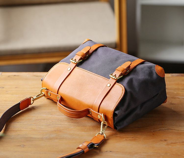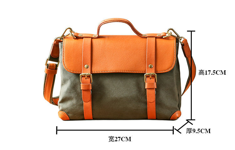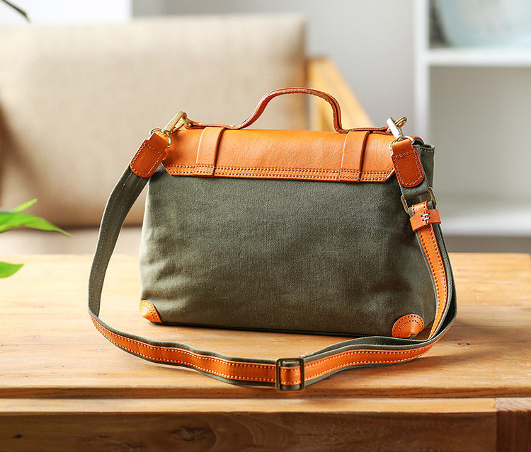 A perfect blend of canvas and genuine leather, this vintage messenger bag brings timeless style to your everyday look. The structured satchel design adds a classic touch while staying practical and comfortable.