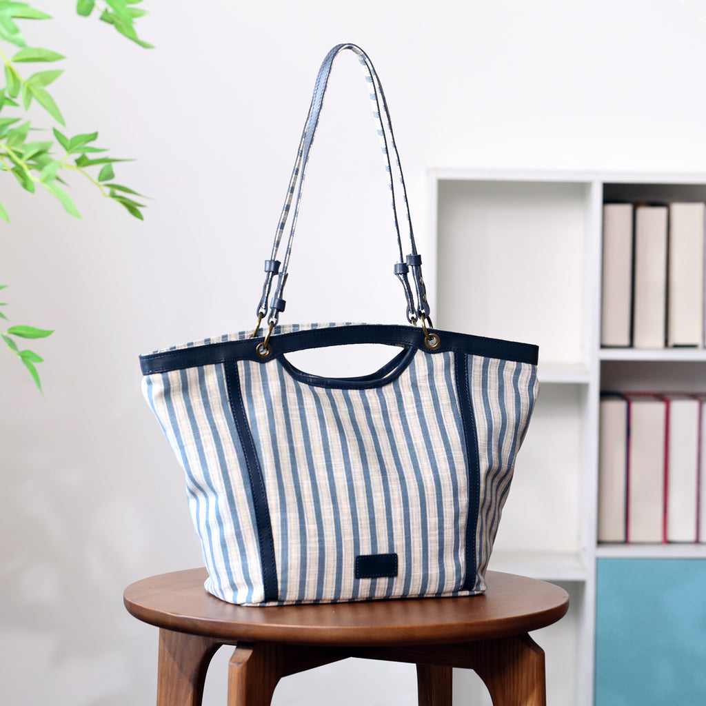 Available in khaki and blue, this tote is designed with dual carrying options — comfortable shoulder straps and sturdy top handles — giving you flexibility and timeless style.