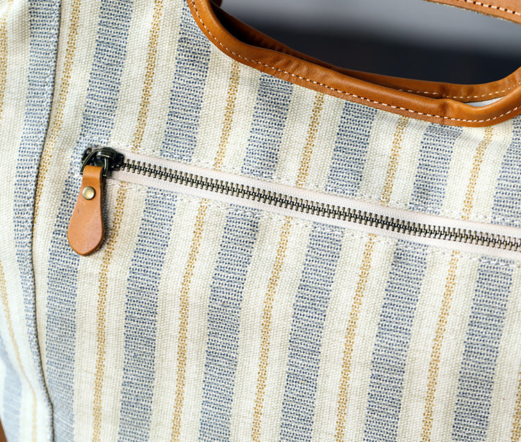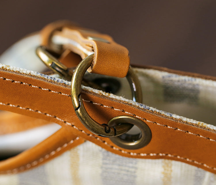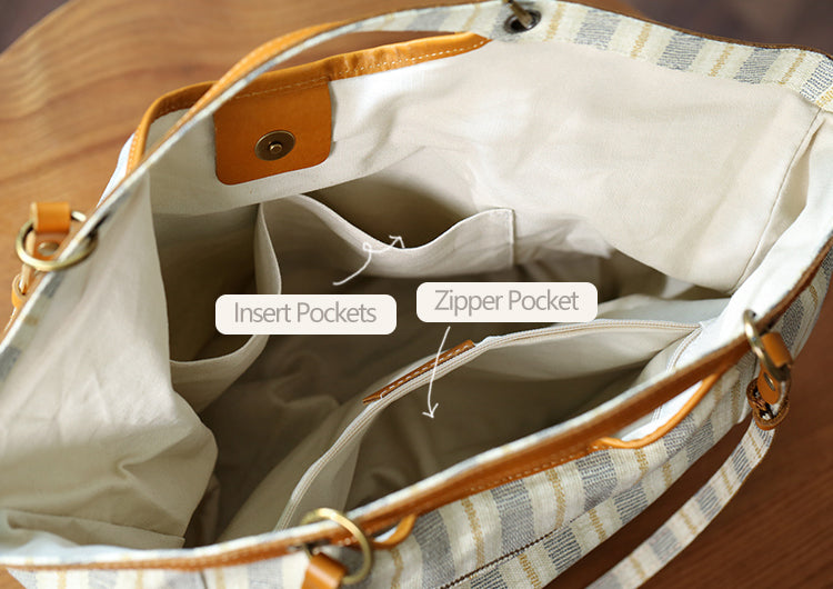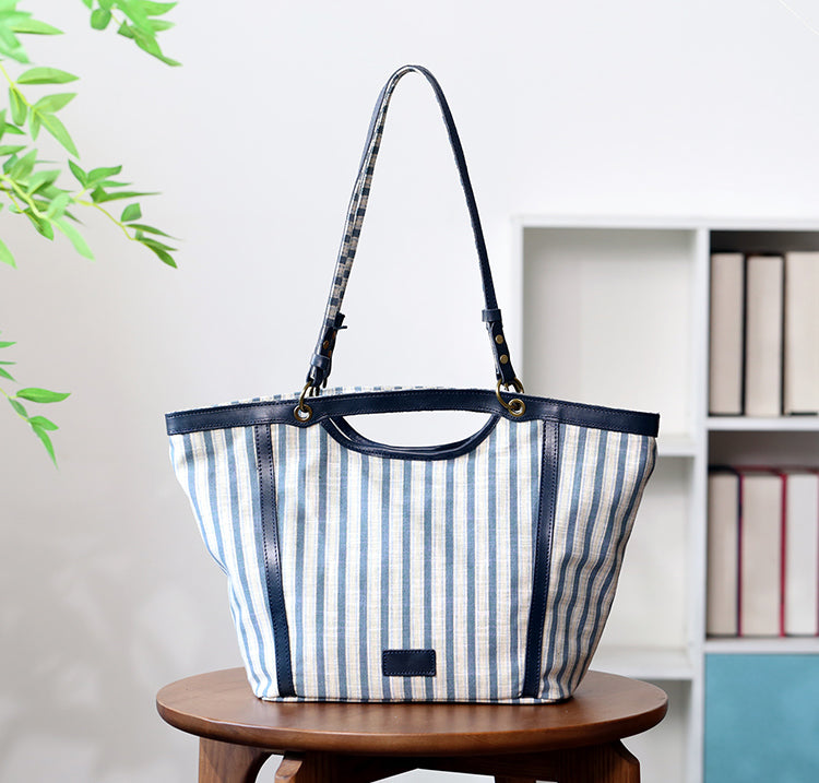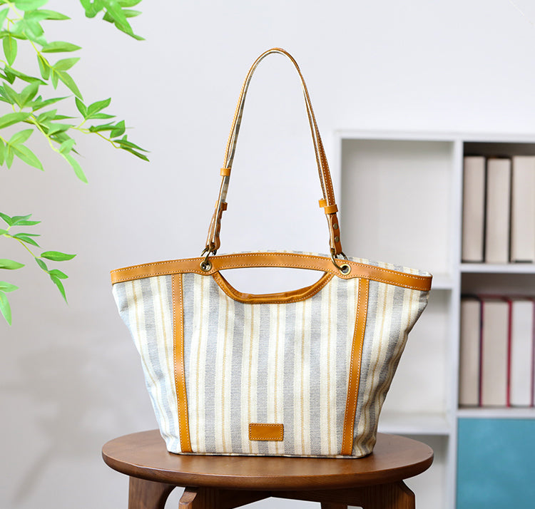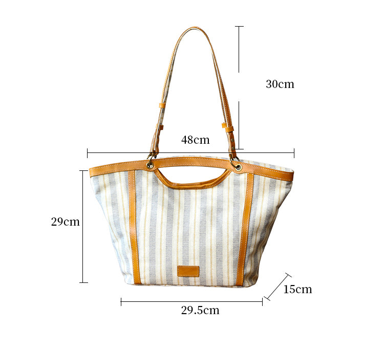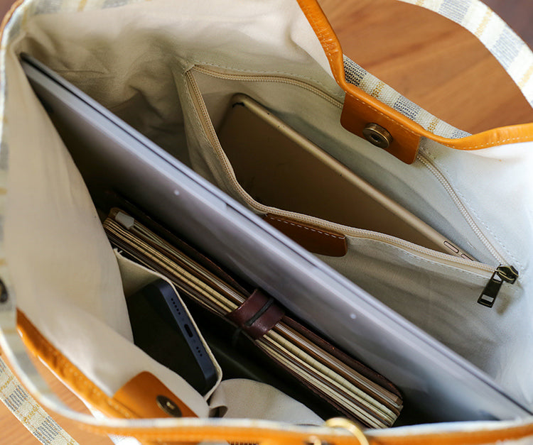 Large Capacity Canvas Handbag for Women Vintage Leather Accent Tote
