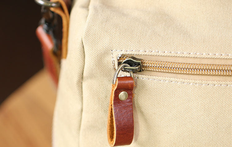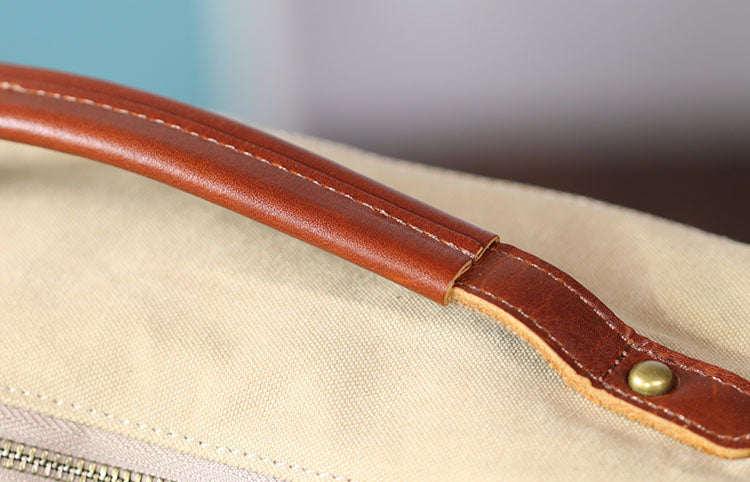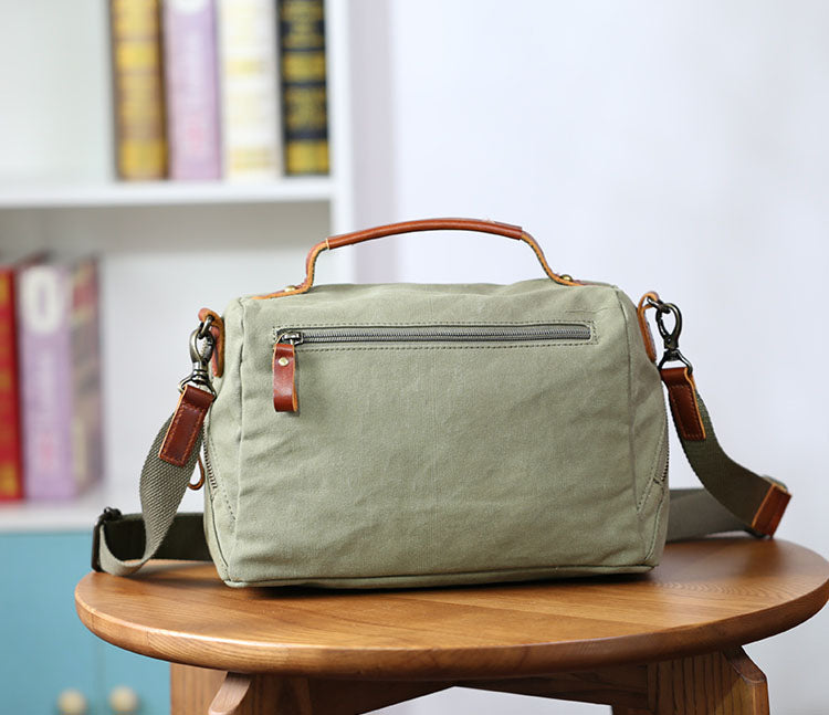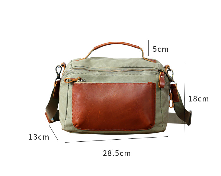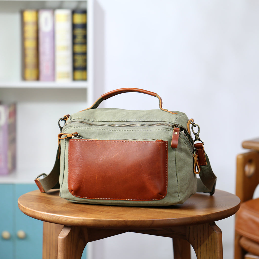 Made from durable canvas combined with genuine cowhide leather, featuring a classic retro box shape.