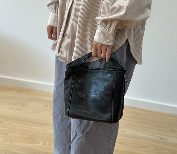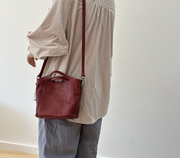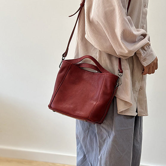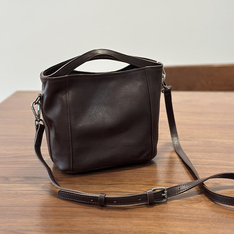 Small Leather Bucket Bag for Women Top Handle Crossbody Purse