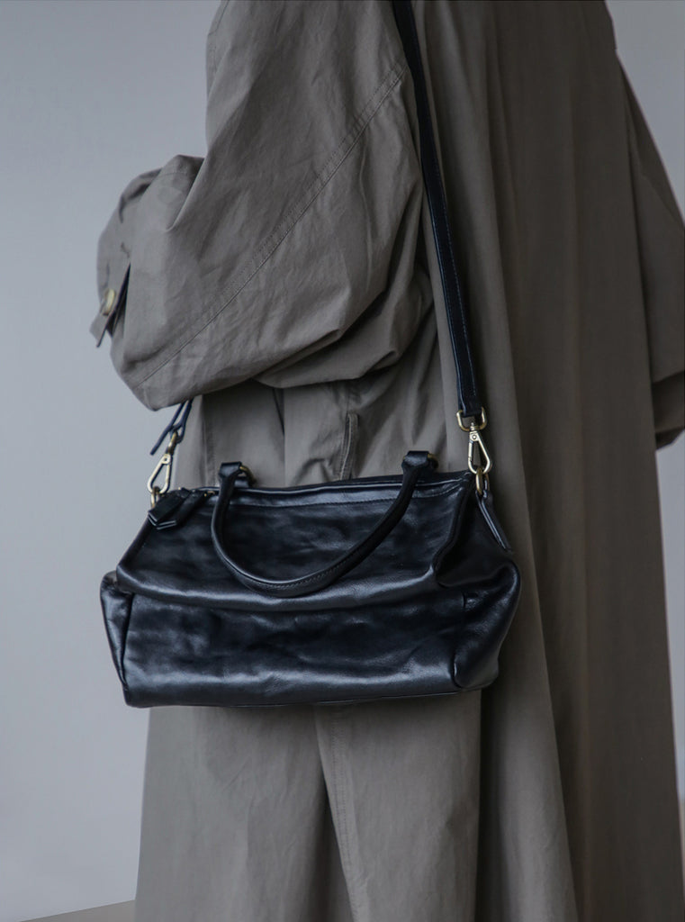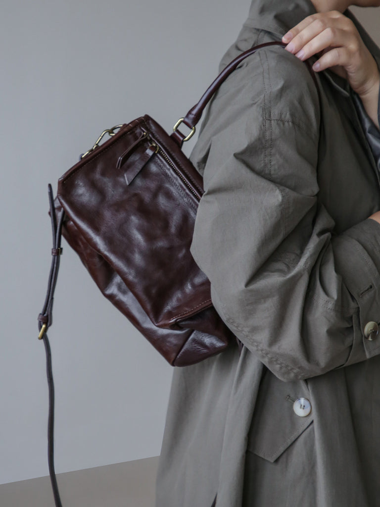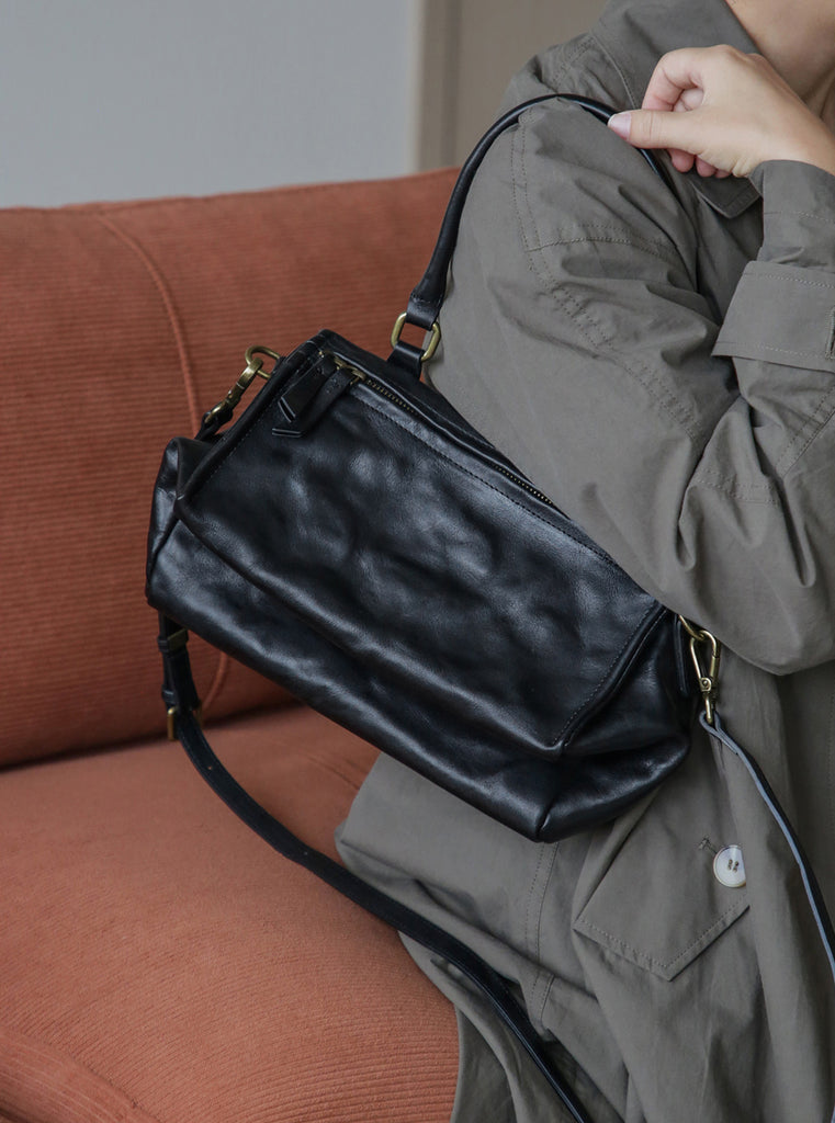 Crafted from vegetable-tanned full-grain cowhide leather, featuring a soft wrinkled texture that gives the bag a relaxed, effortless look.