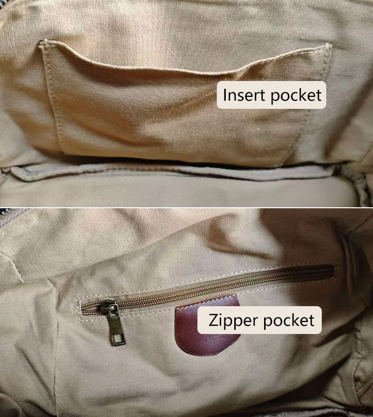 Made from durable canvas combined with full-grain genuine cowhide leather trim, featuring a casual retro look.