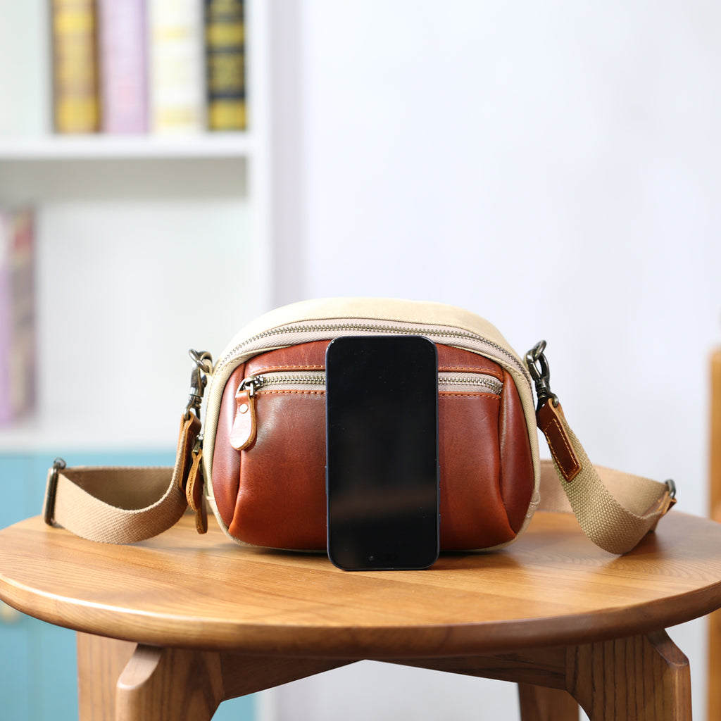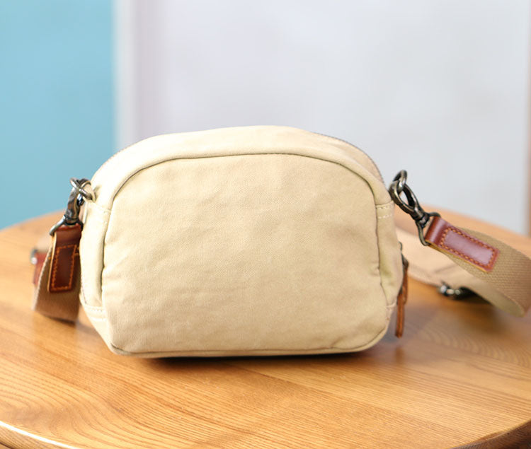Womens Vintage Canvas and Leather Mini Crossbody Bag Shoulder Bag